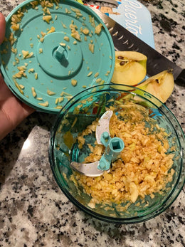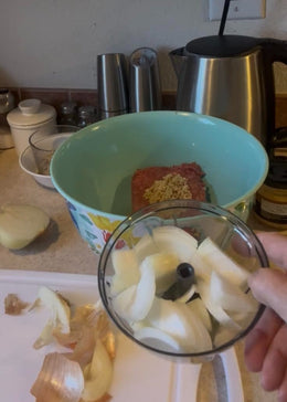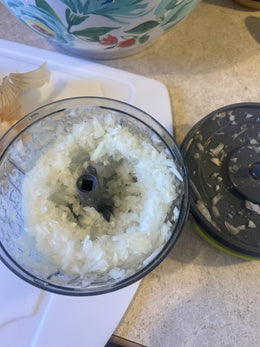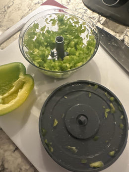 Vergiss endloses Schneiden und tränende Augen. Mit Choply brauchst du nur ein paar Züge an der Schnur und dein Gemüse ist perfekt gehackt.