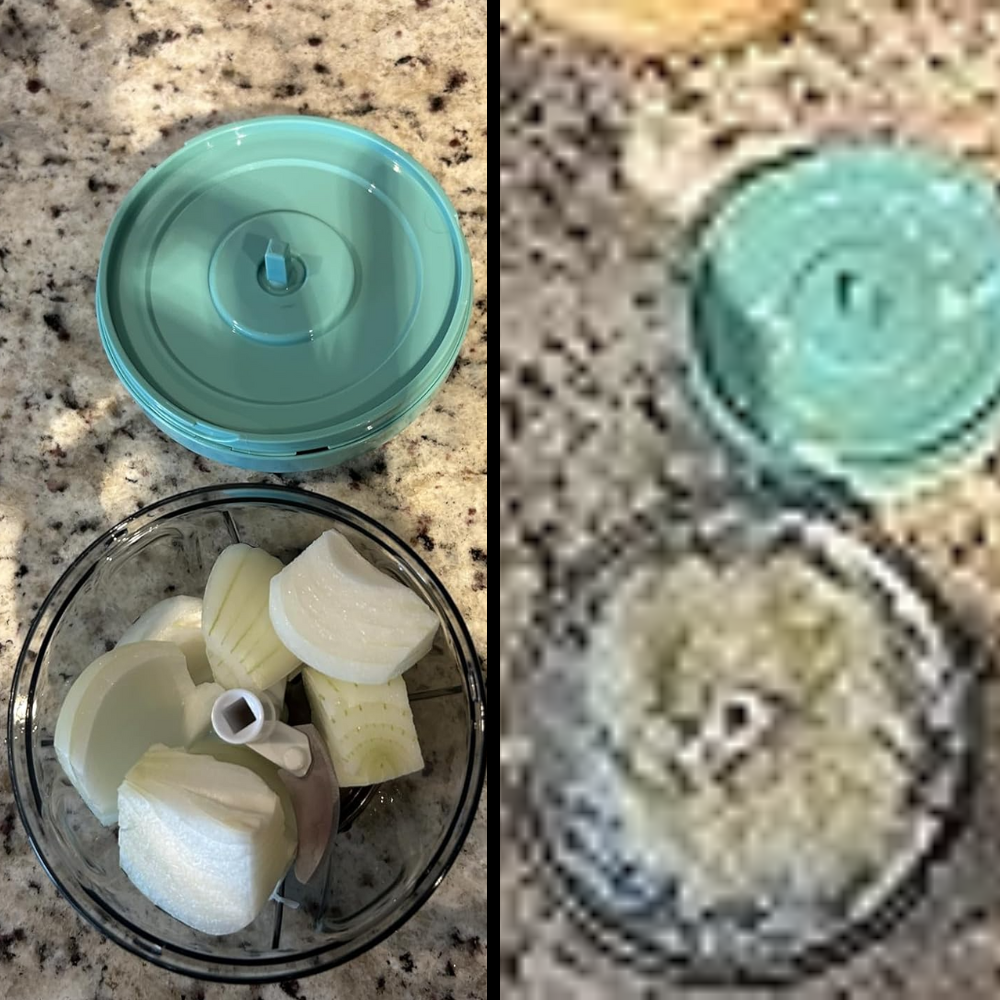 TTobias H.verifizierter KäuferSchneller als mein elektrischer MixerDachte zuerst, so ein manuelles Gerät wäre umständlich, aber das Gegenteil ist der Fall. Ein paar Züge mit der Schnur und schon ist das Gemüse perfekt zerkleinert. Besonders für Zwiebeln und Knoblauch einfach genial.CHOPLY™ – Manueller Schnellhacker, kompakt & ohne Strom Hilfreich gefunden? 0 0 -